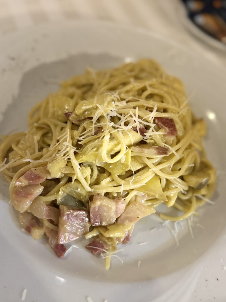 Spaghetti alla carbonara di carciofi